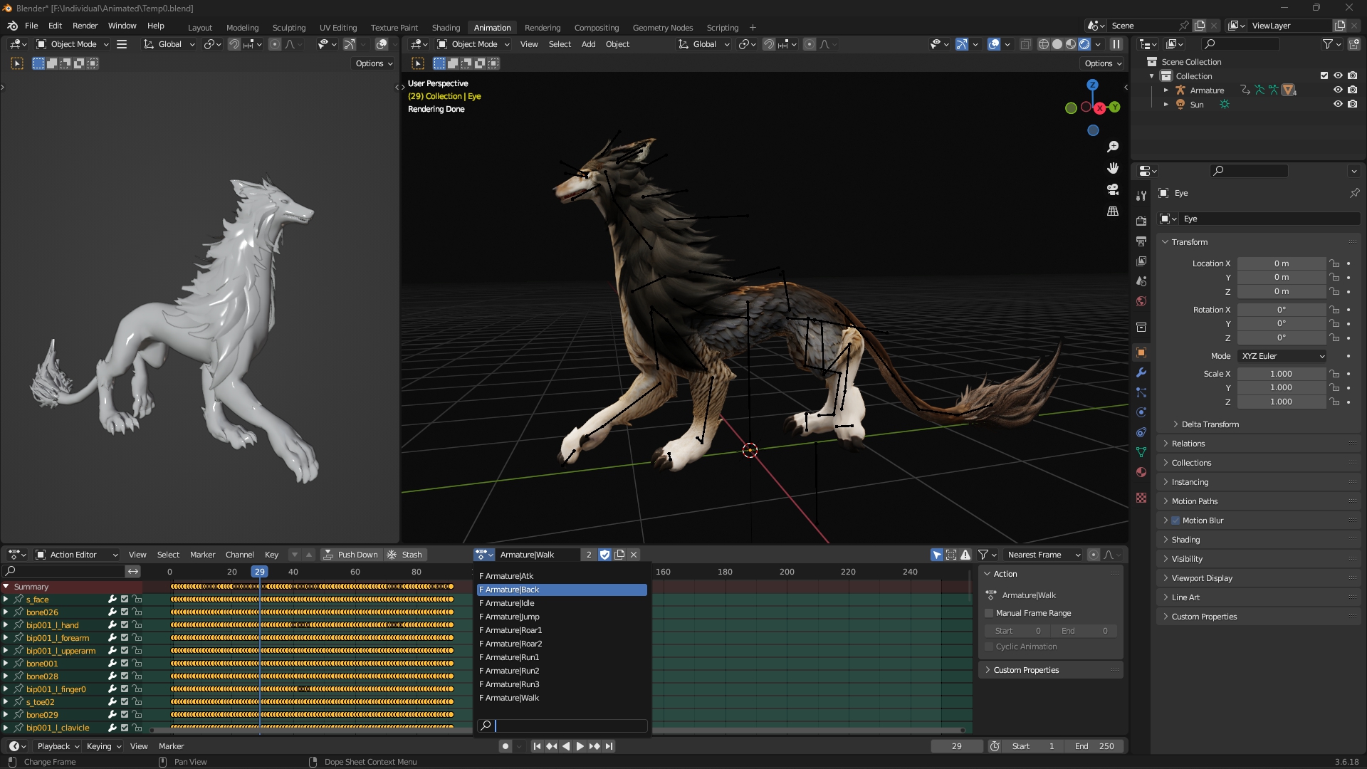 - Motions: 10 – Atk,Back,Idle,Jump,Roar1,Roar2,Run1,Run2,Run3,Walk